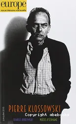 Pierre Klossowski, Auteur ; Thierry Tremblay, Auteur ; Giorgio Agamben, Auteur ; Serge Fauchereau, Auteur ; Gilles Deleuze, Auteur ; Roger Caillois, Auteur ; Bernard Noël, Auteur ; Patrick Wald Lasowski, Auteur | Paris : Europe | Europe : revue littéraire mensuelle, ISSN 0014-2751 | 2015Présentation de l'éditeur : « Écrivain, peintre et traducteur, Pierre Klossowski est né à Paris en 1905 dans une famille d'artistes. Frère aîné de Balthus, il a fréquenté dès ses jeunes années Rainer Maria Rilke et André Gide, puis Georges Batai[...]![]()