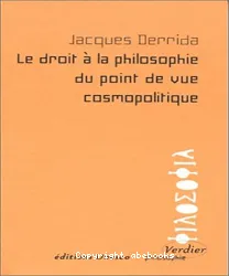 "Lors d'une conférence prononcée sous les auspices de l'UNESCO, Jacques Derrida s'interroge sur une certaine internationalisation en cours de la philosophie, de son enseignement autant que de ses pratiques, recherches ou expériences. Il inscrit[...]![]()