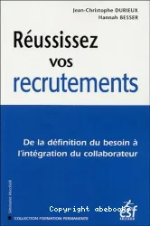 Jean-Christophe Durieux, Auteur ; Hannah Besser, Auteur | Issy-les-Moulineaux : ESF | Collection Formation permanente, ISSN 0768-2026 | impr. 2005"A l'heure où la réussite de vos recrutements est un enjeu stratégique, sécuriser vos pratiques est indispensable. Cet ouvrage vous accompagne pas à pas dans chacune des étapes du processus. Véritable guide chronologique, il associe les deux fac[...]