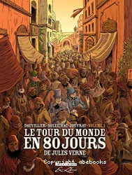Loïc Dauvillier, Auteur ; Aude Soleilhac, Auteur ; Jules Verne, Antécédent bibliographique | [Paris] : Delcourt | Ex-libris (Paris. 2007), ISSN 1956-6670 | impr. 2008En 1872, le riche gentleman londonien Phileas Fogg parie vingt mille livres qu'il fera le tour du monde en quatre-vingts jours. Débute pour lui et son valet de chambre, le dévoué Passepartout, une course contre la montre riche en aventures...